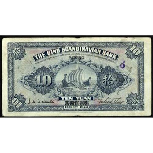 <style type="text/css"> body, td, th { font-family: Arial, Helvetica, sans-serif; font-size: 12px; color: #482424; margin: 0px; padding: 0px; } #header { background-image: url(http://www.bowersandmerena.com/ebay/images/template_v3_01.gif); clear: both; background-color: #590303; border-top-width: 2px; border-top-style: solid; border-top-color: #B38C4F; } #header #header_wrapper { height: 75px; clear: both; width: 800px; margin-right: auto; margin-left: auto; background-image: url(http://www.bowersandmerena.com/ebay/images/template_v3_03.gif); background-repeat: no-repeat; background-position: right; color: #F3EDCC; } #header #header_wrapper #header_logo { float: left; height: 75px; width: 444px; background-image: url(http://www.bowersandmerena.com/ebay/images/template_v3_02.gif); background-repeat: no-repeat; font-size: 10px; text-transform: capitalize; color: #B38C4F; } #header #header_wrapper #header_right { float: left; height: 75px; width: 356px; text-align: right; } #header #header_wrapper #header_right #headerLoginBtn { margin-bottom: 30px; } #header #header_wrapper #header_right input#txtSearch { color: #B49056; border: 1px solid #B49056; width: 175px; padding-top: 3px; padding-right: 3px; padding-bottom: 4px; padding-left: 3px; } #nav { height: 37px; background-image: url(http://www.bowersandmerena.com/ebay/images/template_v3_05.gif); clear: both; } #nav #nav_wrapper { height: 35px; width: 800px; margin-right: auto; margin-left: auto; border-left-width: 1px; border-left-style: solid; border-left-color: #B38C4F; } #nav #nav_wrapper a { padding-right: 15px; padding-left: 15px; border-right-width: 1px; border-right-style: solid; border-right-color: #B38C4F; height: 25px; padding-top: 10px; display: block; float: left; text-decoration: none; font-weight: bold; color: #5D0303; } #nav #nav_wrapper a:hover { color: #B38C4F; } #nav #nav_wrapper #search { float: right; padding-top: 7px; } #nav #nav_wrapper #search #txtSearch { font-family: Arial, Helvetica, sans-serif; font-size: 10px; text-transform: uppercase; color: #D2AE75; border: 1px solid #B38C4F; padding: 3px; } #content_bgd { background-image: url(http://www.bowersandmerena.com/ebay/images/template_v3_09.gif); background-repeat: repeat-y; background-position: center; padding-top: 15px; padding-bottom: 15px; background-color: #FBFBDB; } #content_wrapper { clear: both; height: auto; width: 800px; margin-right: auto; margin-left: auto; } .LotDetailWhite { line-height:normal; font-size:13px; font-family: arial,helvetica,sans-serif; color: White; font-weight: bold; } .LotDetailInformation { line-height:normal; font-size: 13px; font-family: arial,helvetica,sans-serif; } .LotDetailMessage { line-height:normal; font-size: 13px; font-family: arial,helvetica,sans-serif; color: red; } } tr.HeaderAuctionTitle td { color: #000000; font-weight: bold; padding: 2px; background-image: url(http://www.bowersandmerena.com/ebay/images/template_v3_05.gif); background-repeat: repeat-x; border-bottom-width: 1px; border-bottom-style: solid; border-bottom-color: #B38C4F; } table.AuctionSummary a, table.AuctionSummary a:link, table.AuctionSummary a:visited { color: #0000FF; text-decoration: none; } } td.tableHeaderLeft { border-left-width: 1px; border-left-style: solid; border-left-color: #B38C4F; } td.tableHeaderRight { border-right-width: 1px; border-right-style: solid; border-right-color: #B38C4F; } td.tableCellMiddle { border-left-width: 1px; border-left-style: solid; border-left-color: #B38C4F; border-right-width: 1px; border-right-style: solid; border-right-color: #B38C4F; padding: 5px; } tr.footer td { border-top-width: 1px; border-top-style: solid; border-top-color: #B38C4F; } </style> </head> <body> <div id="header"> <div id="header_wrapper"> <div id="header_logo"> </div> <div id="header_right"> </div> </div> </div> <div id="nav"> <div id="nav_wrapper"> <a href="http://www.bowersandmerena.com">Our eBayLive Auctions</a> <a href="#PaymentInfo">Payment Information</a> <a href="#ShippingInfo">Shipping Information</a> <a href="#About">About Bowers and Merena</a> </div> </div> <div id="content_bgd"> <div id="content_wrapper"> <table width="100%" border="0" cellpadding="5" cellspacing="0" class="AuctionSummary"> <tbody> <tr class="HeaderAuctionTitle" style="height: 25px;"> <td align="left" class="tableHeaderLeft" > </td> <td align="center" class="tableHeaderRight"> <span style="font-size: large;">Lot #509. Foreign Banks. Sino-Scandinavian Bank, Peking Branch.</span> </td> </tr> <tr> <td colspan="3" class="tableCellMiddle"> 1922, 10 Yuan, P-S589A, Peking overprinted on Tientsin note (P-S594), VF condition, hillside pagoda on face and Viking ship on back.
