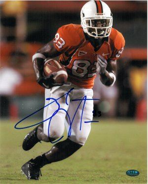 Sinorice Moss played college football at the University of Miami, where he was a standout wide receiver. He was a speedy receiver who has a knack for making big plays. Sinorice Moss has hand autographed this Miami Hurricanes 8x10 Photo. Sinorice Moss hologram and Certificate of Authenticity from Athlon Sports.