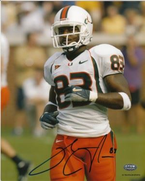 Sinorice Moss played college football at the University of Miami, where he was a standout wide receiver. He was a speedy receiver who has a knack for making big plays. Sinorice Moss has hand autographed this Miami Hurricanes 8x10 Photo. Moss hologram and Certificate of Authenticity from Athlon Sports.