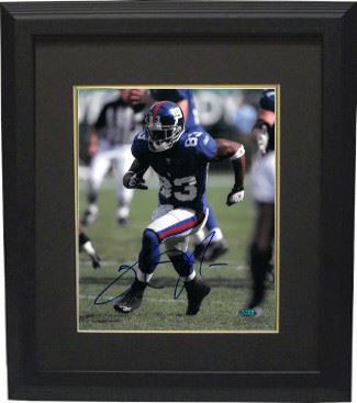 Sinorice Moss was selected by the New York Giants with the 44th overall pick in the second round of the 2006 NFL Draft out of the University of Miami. Sinorice Moss has hand autographed this New York Giants 16X20 Photo. Sinorice Moss hologram and Certificate of Authenticity from Athlon Sports. Custom Black Mat and Premium Black Color Framed as shown