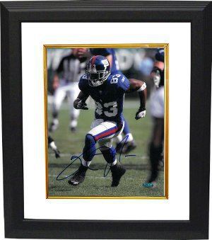 Sinorice Moss was selected by the New York Giants with the 44th overall pick in the second round of the 2006 NFL Draft out of the University of Miami. Sinorice Moss has hand autographed this New York Giants 8x10 Photo. Custom White Mat and Premium Black Color Frame as shown. Sinorice Moss hologram and Certificate of Authenticity from Athlon Sports.