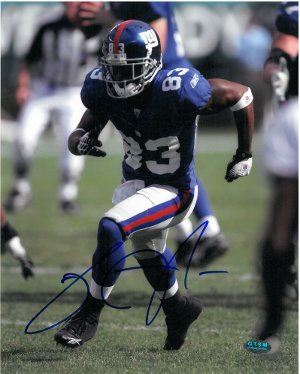 Sinorice Moss was selected by the New York Giants with the 44th overall pick in the second round of the 2006 NFL Draft out of the University of Miami. Sinorice Moss has hand autographed this New York Giants 8x10 Photo. Sinorice Moss hologram and Certificate of Authenticity from Athlon Sports.