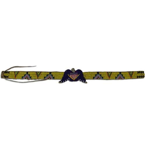 Sioux Beaded Hatband, 22 1/2" long, 1 1/4" tall, Eagle is 2 3/8" tall