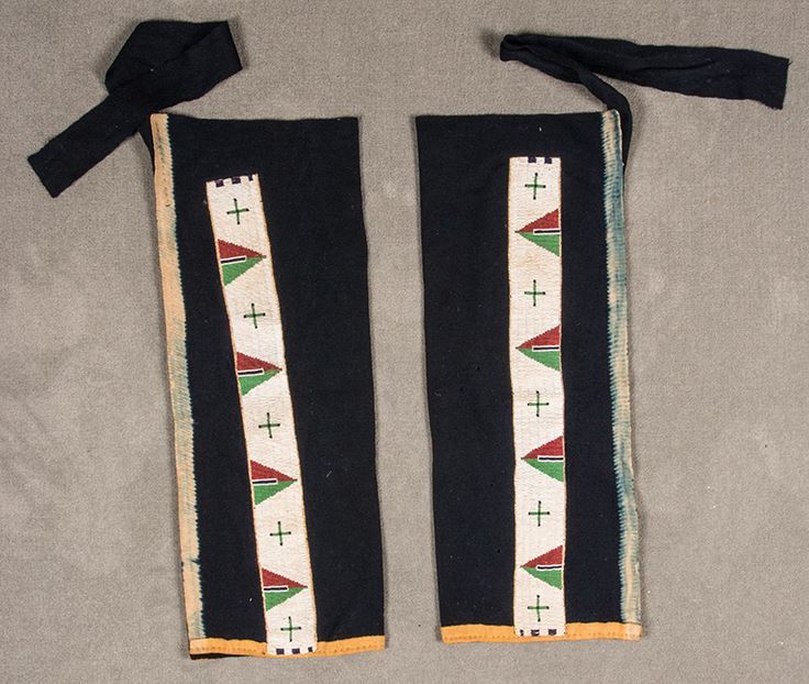 Sioux Beaded Man's Leggings. 31" x 11 ½". Beautifully beaded strips on wool trade cloth. Fine condition. 19th century.