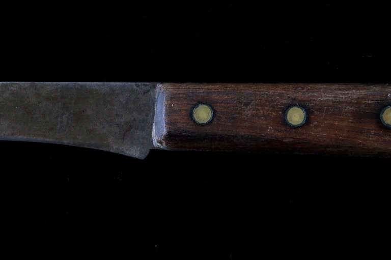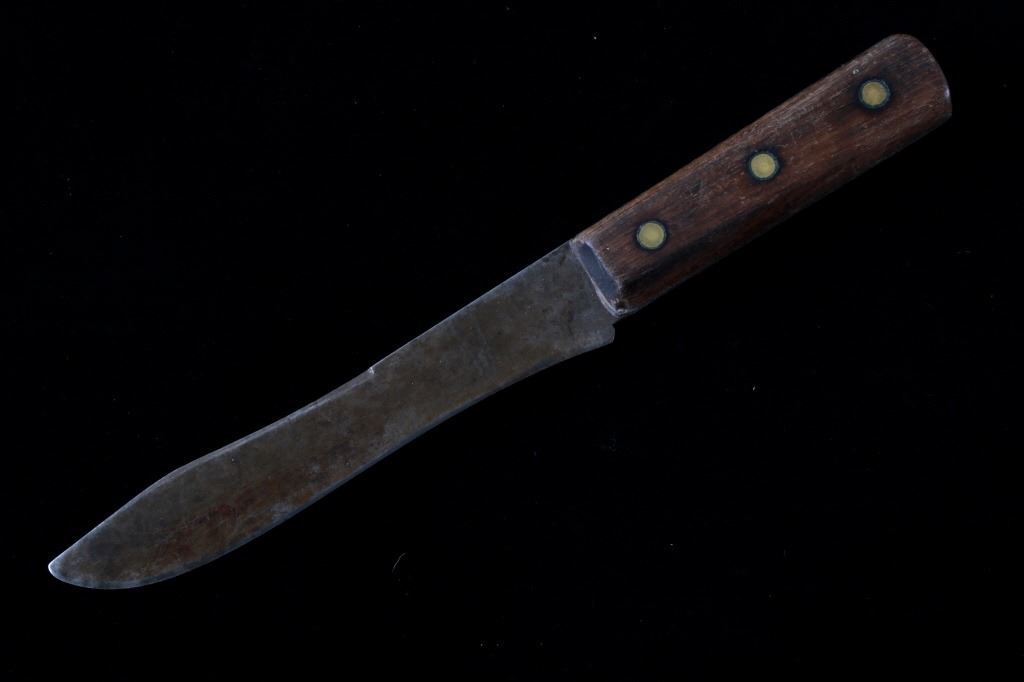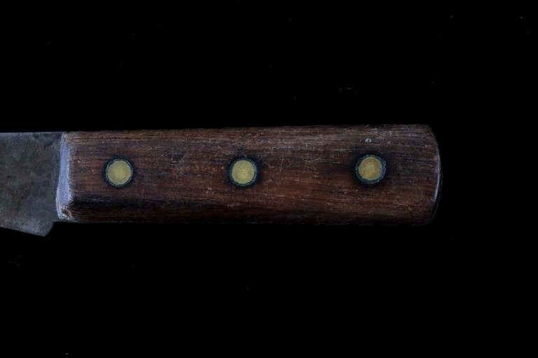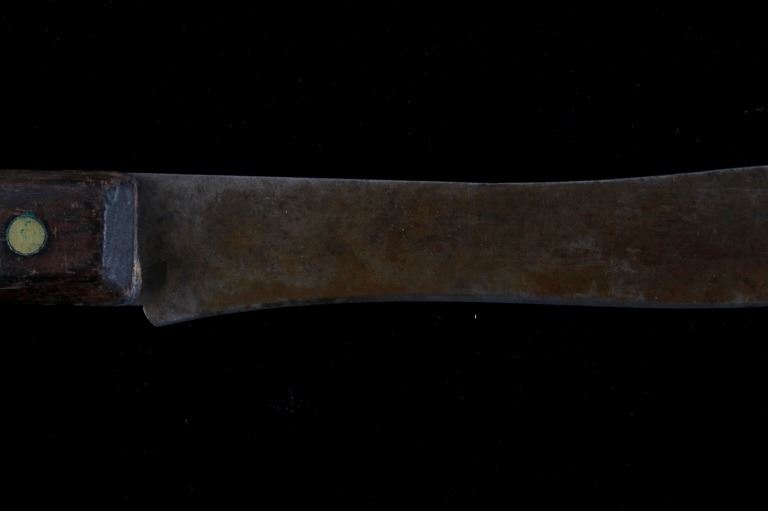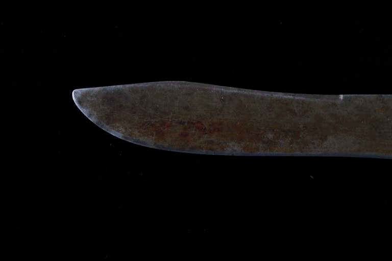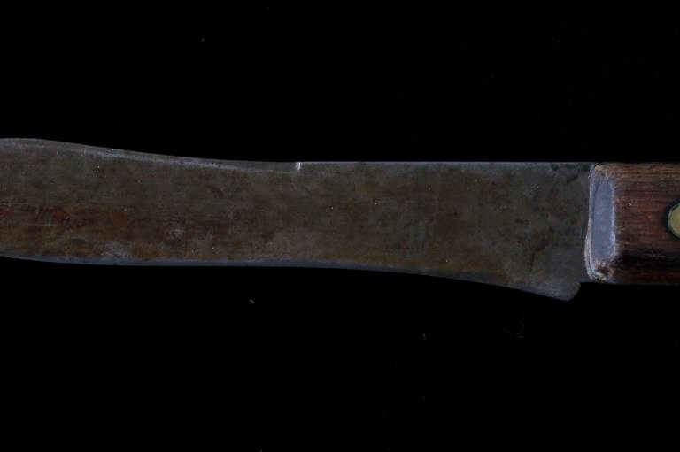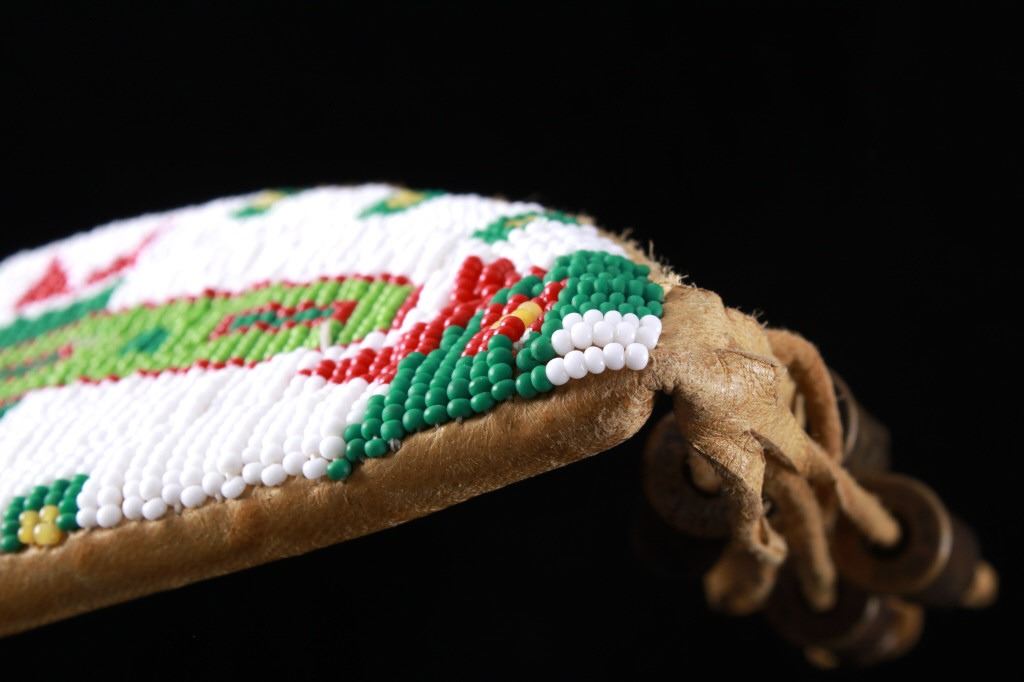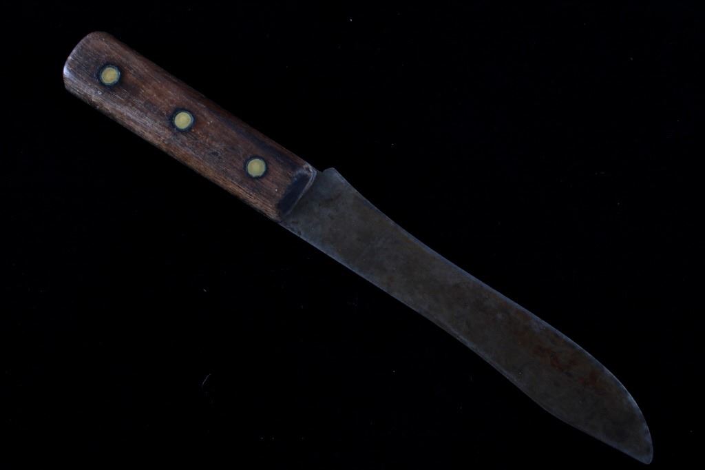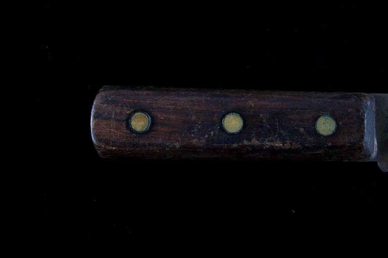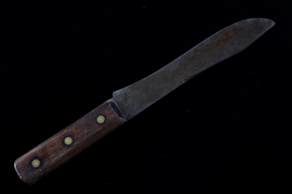 The lot features a mid-to-late 20th Century beaded sheath from the Sioux Indians paired with an old late 19th Century Indian Trade Knife. The knife features a Buffalo Skinner pattern with sharp blade having a nice dark coloring and is paired with a two piece walnut grip with copper rivets. The sheath is comprised of tanned hide leather over harness saddle leather and is covered in glass beadwork in a geometric pattern further accented by fringe along the top and bottom. The bottom fringe have four jingle cones which are comprised of brass shell casings, three W-W (Winchester Western) Winchester .38-40 cases and one W-W (Winchester Western) Super .44 Remington Magnum case. The fringes extended at the top center around to the back side. The piece was likely made for use at a ceremony, powwow or rendezvous. The sheath measures 20"L with fringes by approx. 6"W. The knife is 11 3/8"L with a 6 7/8"L blade.