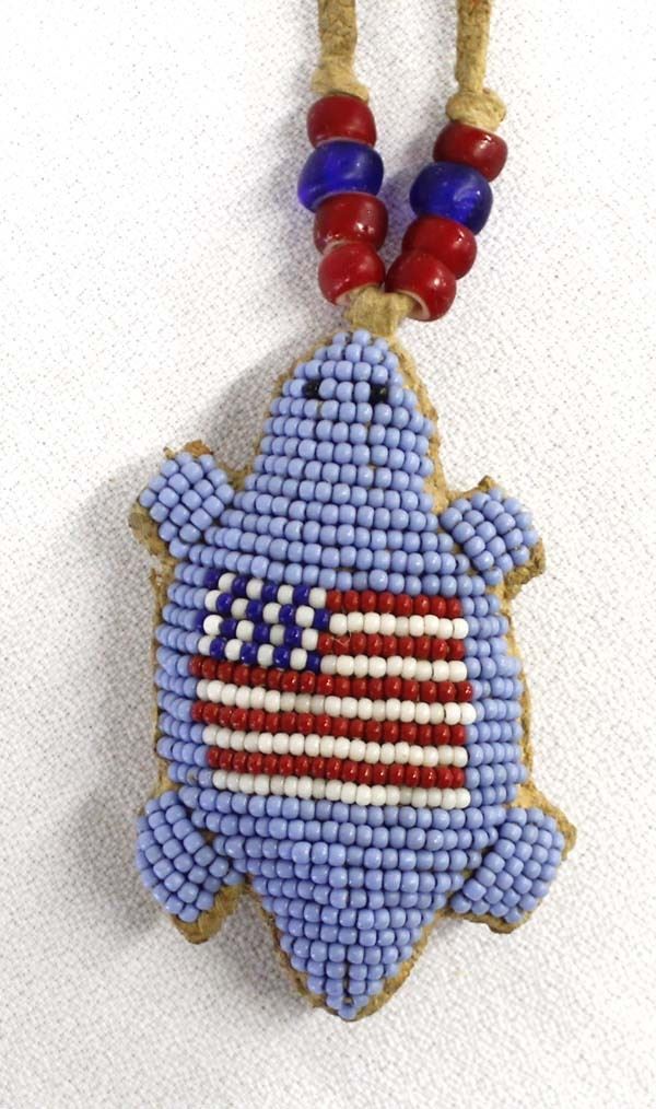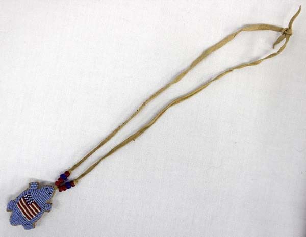 Native American Sioux Beaded Turtle Fetish Necklace, measures 26''L end to end and fetish measures 2.75''L x 1.75''W