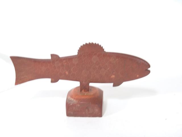 Circa 1900, Monumental fish carving with incised scale, fins, and facial detail - on pedestal with foliate incising. 6-1/2" x 12"