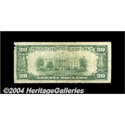 Sioux Center, IA - $20 1929 Ty. 1 The First NB Ch. # 7369An extremely scarce note from the only bank in this small community to issue. Nice Fine-Very Fine, with a tiny nick in the top right corner which affects little. <BR><BR><B>Important notice:</B> Heritage usually auctions material at the rate of 200-250 lots per hour. On some occasions eBay Live bid software or the Internet may not be able to keep up with the pace of the auction. We recommend placing a realistic absentee bid now as insurance to avoid disappointment. Occasionally the auctioneer may eliminate or reject an eBay Live bid, and the auctioneer may also reopen a lot after the close of the eBay live bidding (usually because we missed an audience bid), and may reject your bid even if it shows you as the winning bidder. By bidding via eBay Live, you agree that Heritage may award the lot to another bidder at its sole discretion under the circumstances described above or any other reasonable circumstances. Since eBay bids are not shown to us until we open the lot on the floor, we treat those bids just like floor bids. In most cases the floor responds before the eBay bid is presented to us, due to Internet lag time, so for consistency we have made it a policy that floor bids are always considered first over tie eBay live bids. Also please note that all Heritage lots purchased through eBay Live carry a 20% Buyer's Premium. Please make sure you read the Terms and Conditions before you bid. <BR><BR><B>IMPORTANT ANNOUNCEMENT ABOUT RESERVES:</B> Heritage now divulges all reserves on its web site 7 days before every auction. If you want to know whether the reserve on this lot has been met, and if not, what the reserve amount is, please visit this lot page on the HeritageCoin.com web site, or email: bid@HeritageGalleries.com