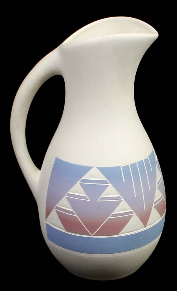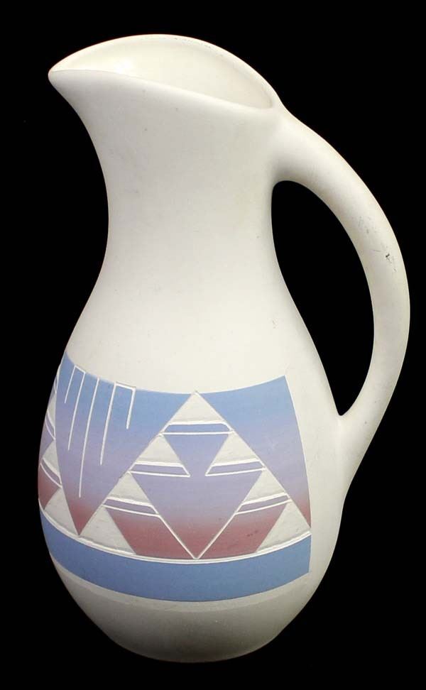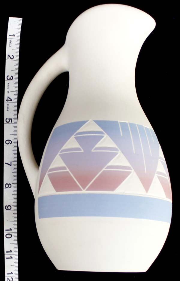 Sioux Hand Painted Ceramic Pottery Pitcher measures 12" x 7"