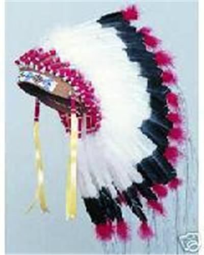 This will make a very fine imitation eagle war bonnet. This headdress was made by myself a Mohawk aboriginal. This bonnet has 30 select 10-12" imitation eagle feathers,35 select 5-6" base fluffs,30 2-3" select tip plumes, beaded browband, and horse hair. Please allow 2 week delivery