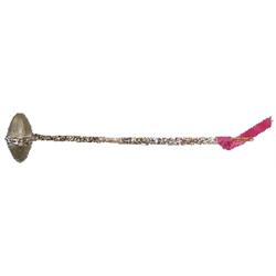 Sioux Indian beaded dance club w/large stone head, handle is decorated w/2 sizes of multicolored seed beads, some missing beads in center of handle, c.1880-1900, 22"L.