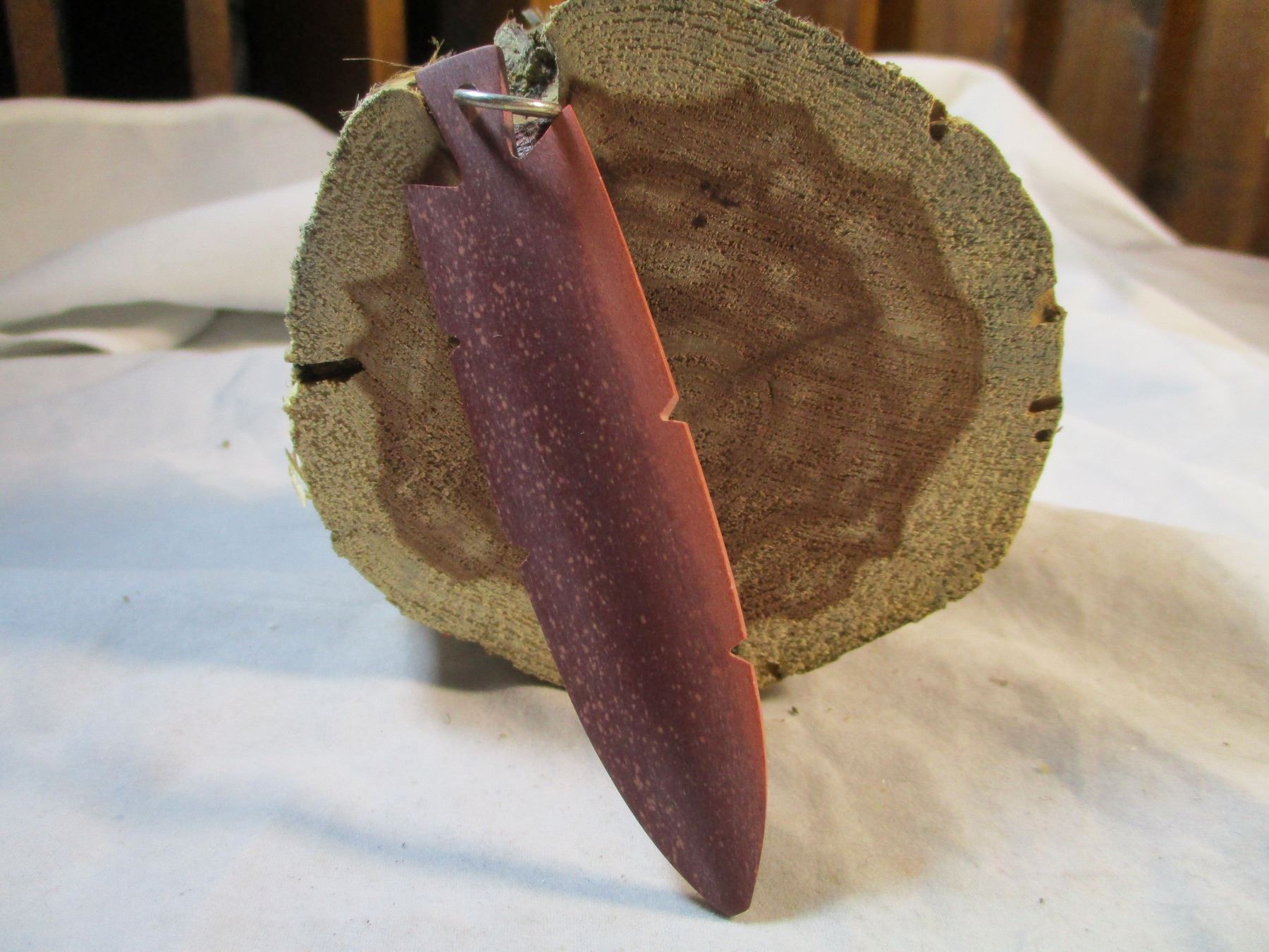 Sioux Made Pipestone Feather Shaped Pendant or Keychain. Ring for keychain has been left off but will be provided so you can decide how to wear it.