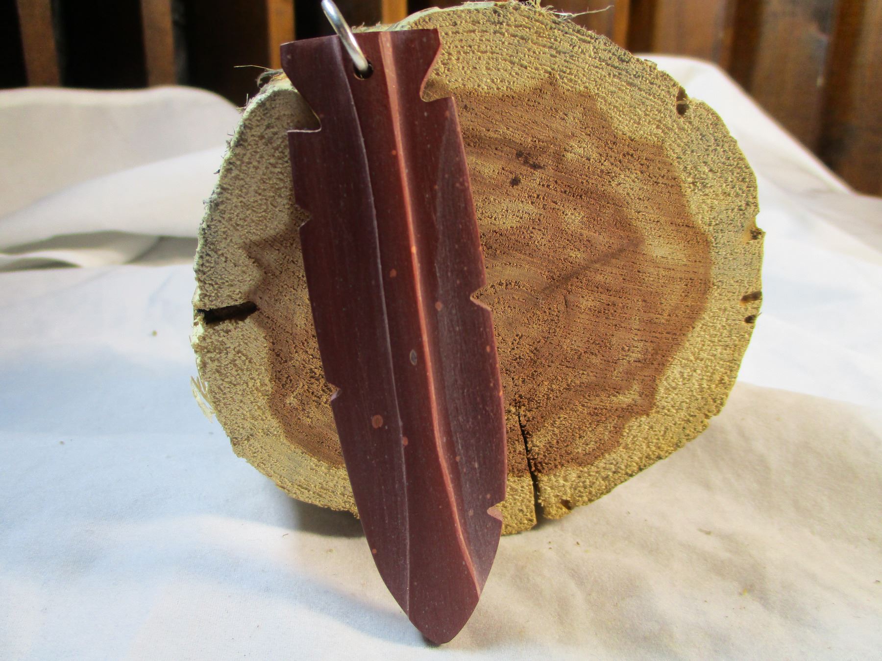 Sioux Made pipestone Feather Shaped Pendant or Keychain. Ring has been left off but will be included for keychain so you can decide how to wear it.