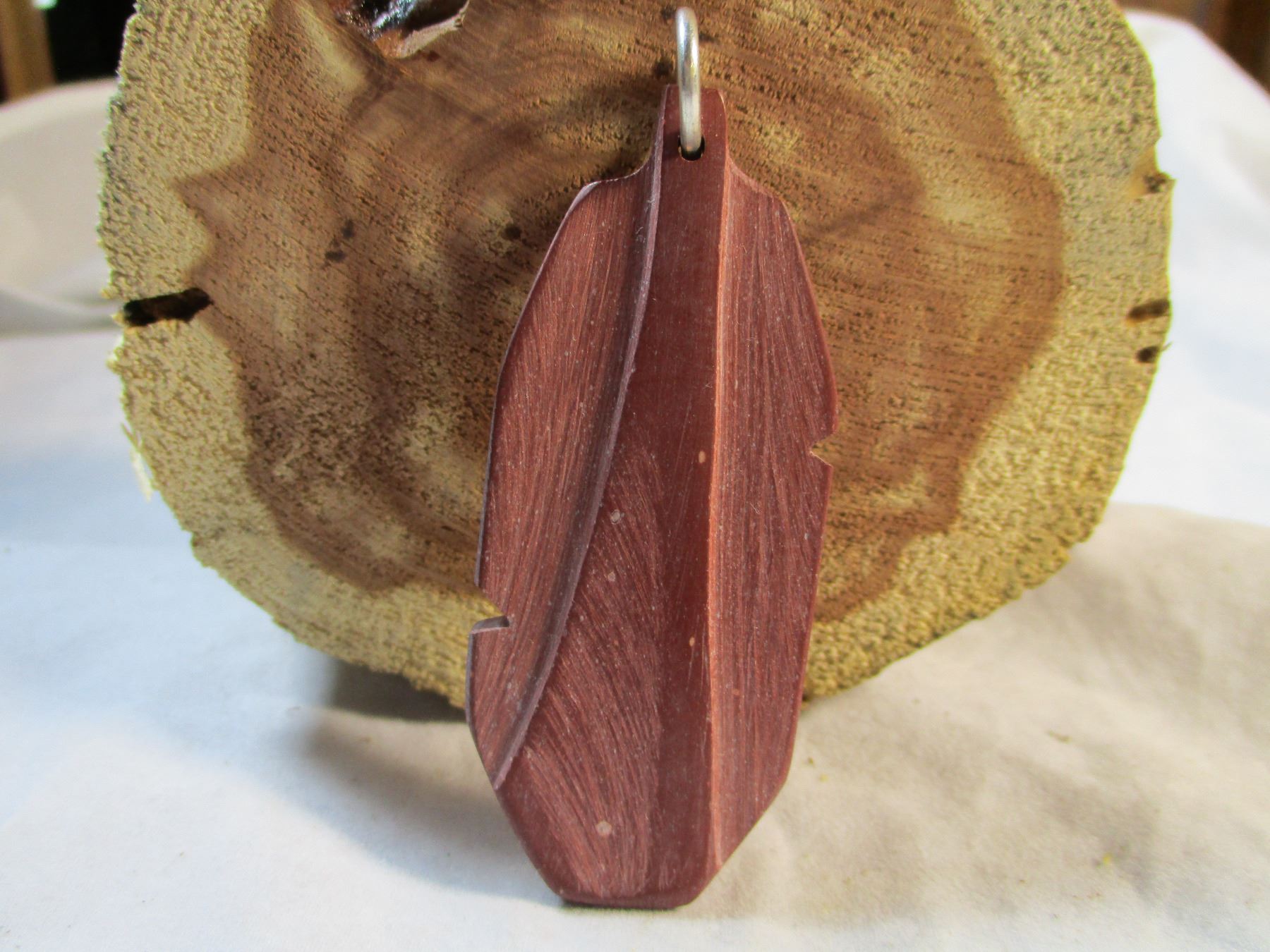 Sioux made pipestone feather shaped pendant or keychain. Ring has been left off of keychain but will be included so you can decide how to wear it.