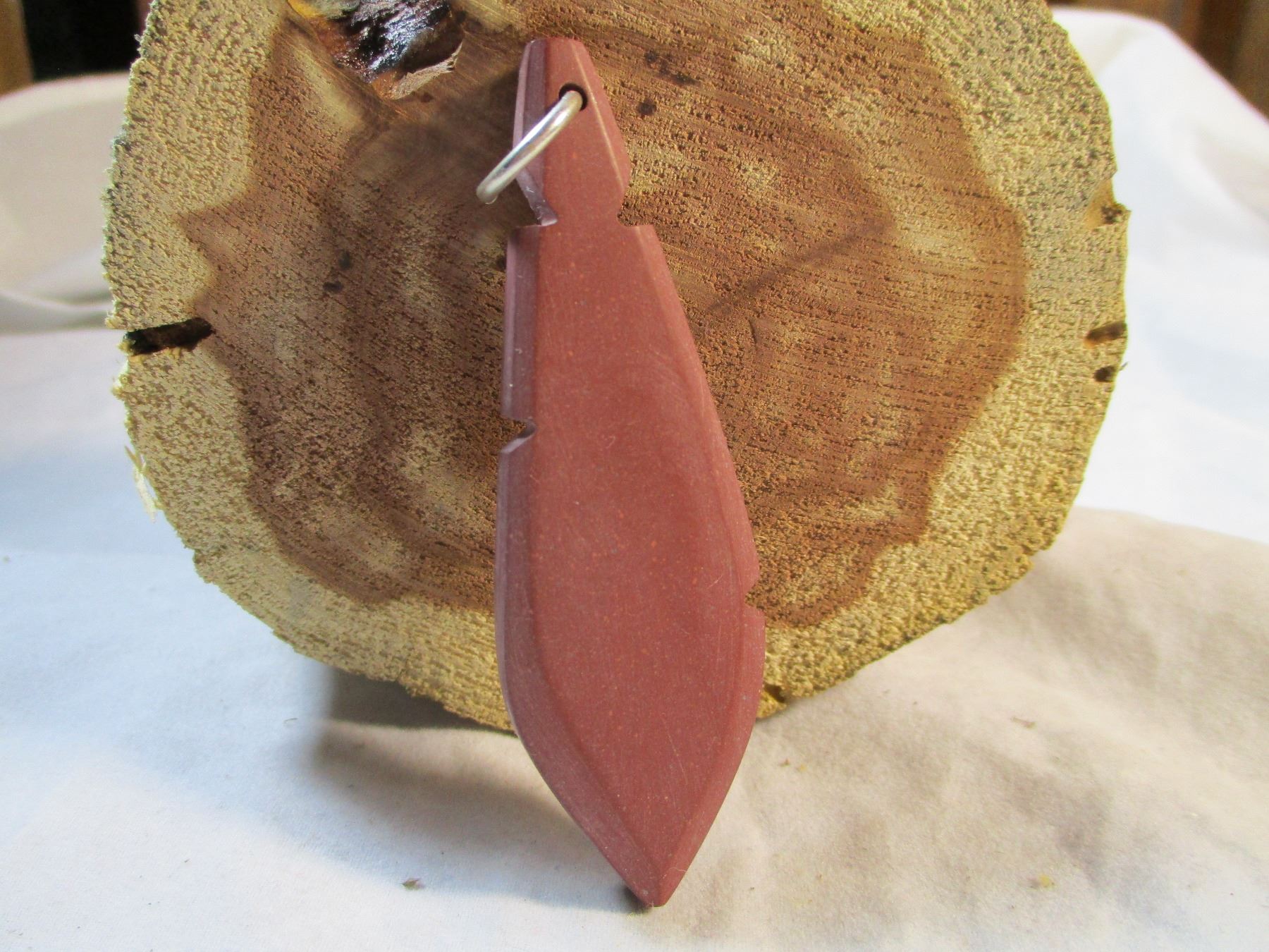 Sioux Made Pipestone Feather Shaped Pendant or Keychain. Ring has been left off of the keychain but will be included so you can decide how to wear it.