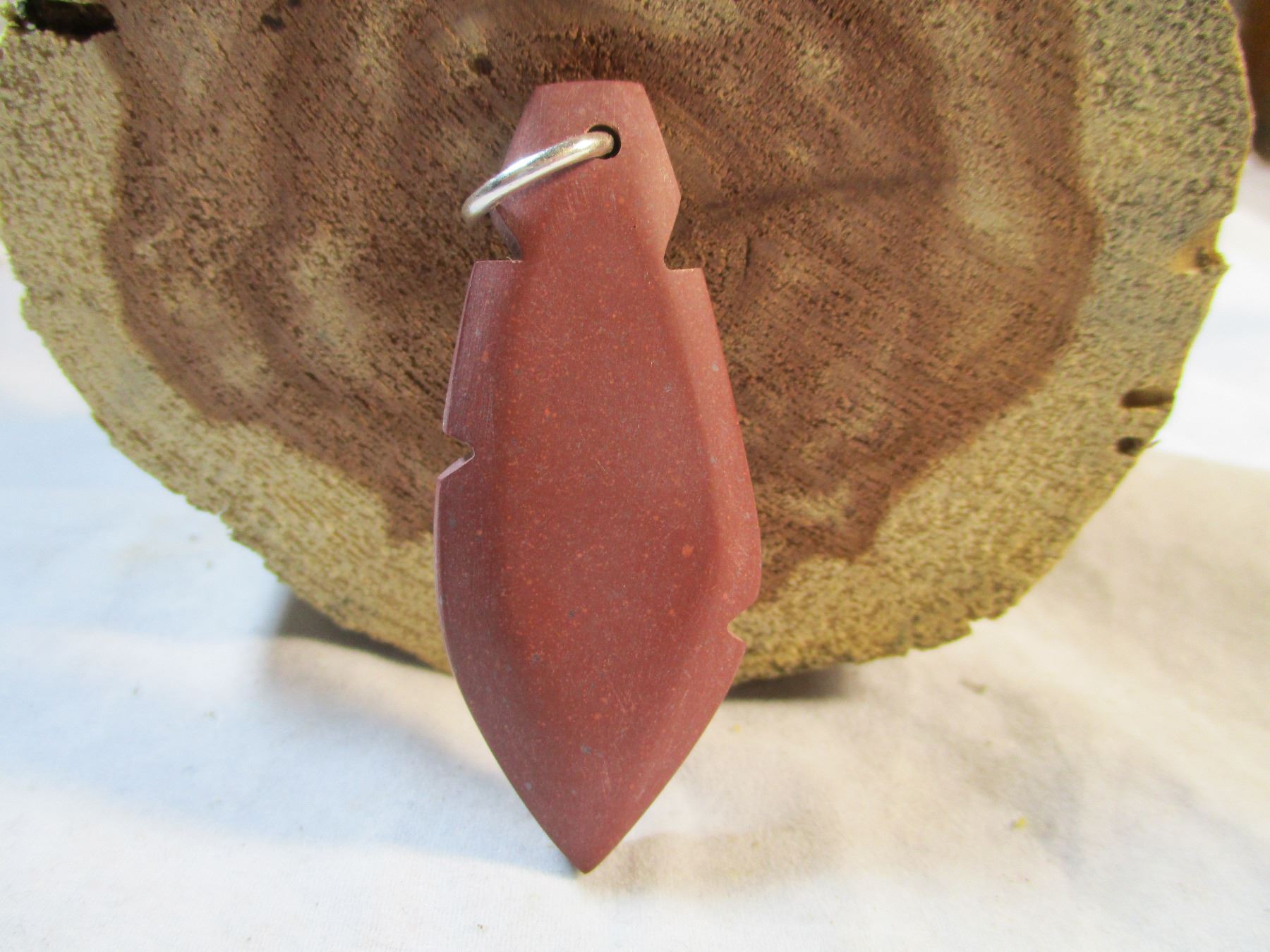 Beautiful Sioux Made Pipestone Feather Shaped Pendant or Keychain. Ring for keychain has been left off but will be provided so you can decide how to wear it.