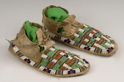 Sioux Moccasins. 10 3/4" long. Checkerboard design. 19th century. Fine condition. (est $1,500-1,800)
