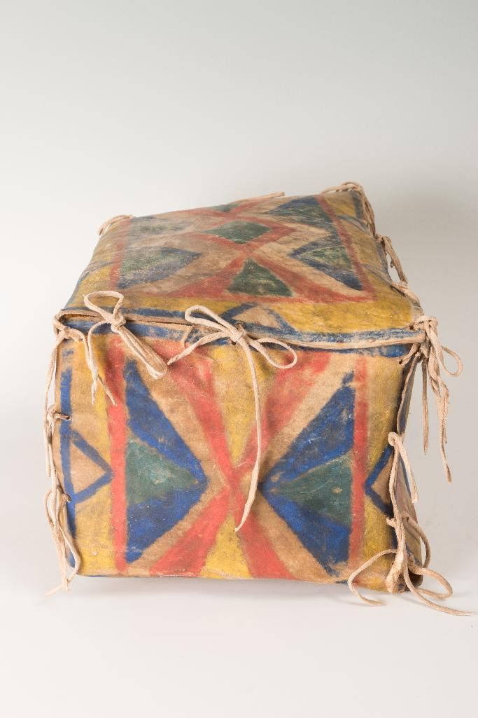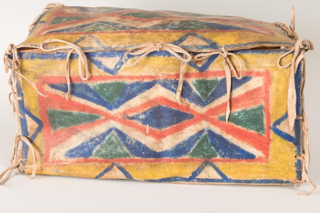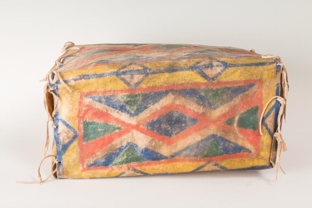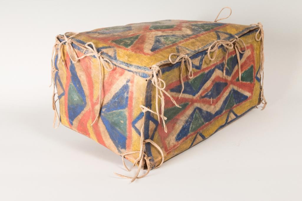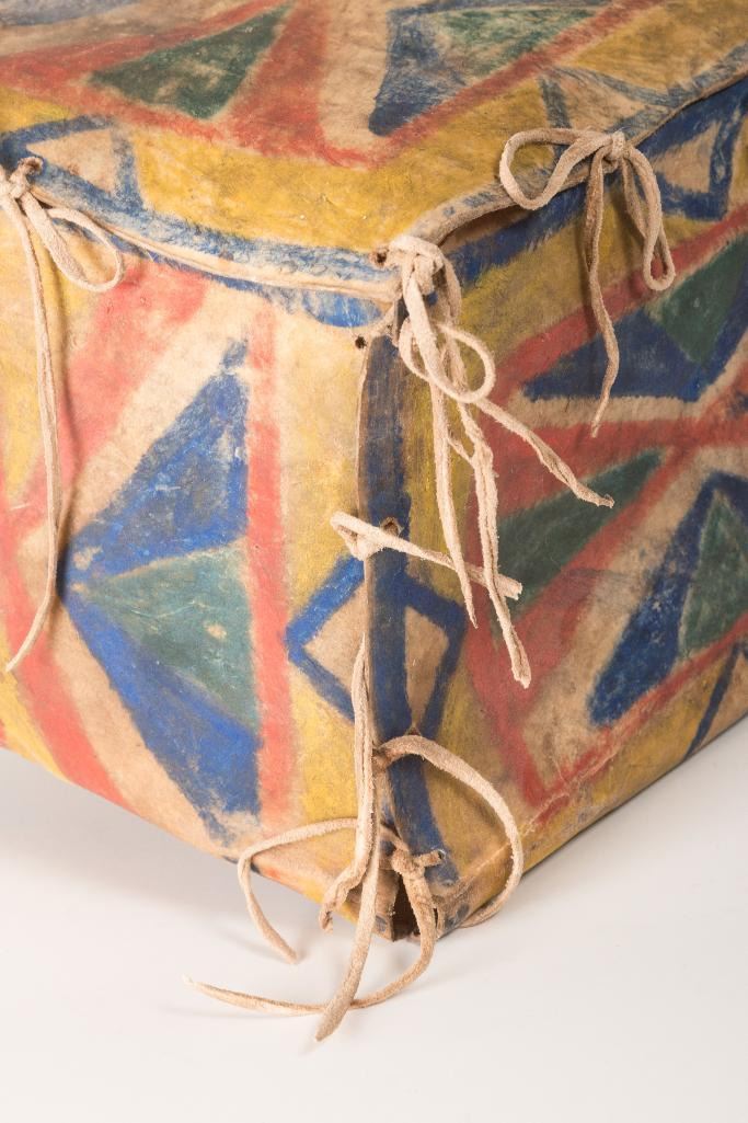 Sioux Parfleche Box 7" x 8.5" x 14.5". Nicely painted in geometric designs. 19th century. $2,000-3,000