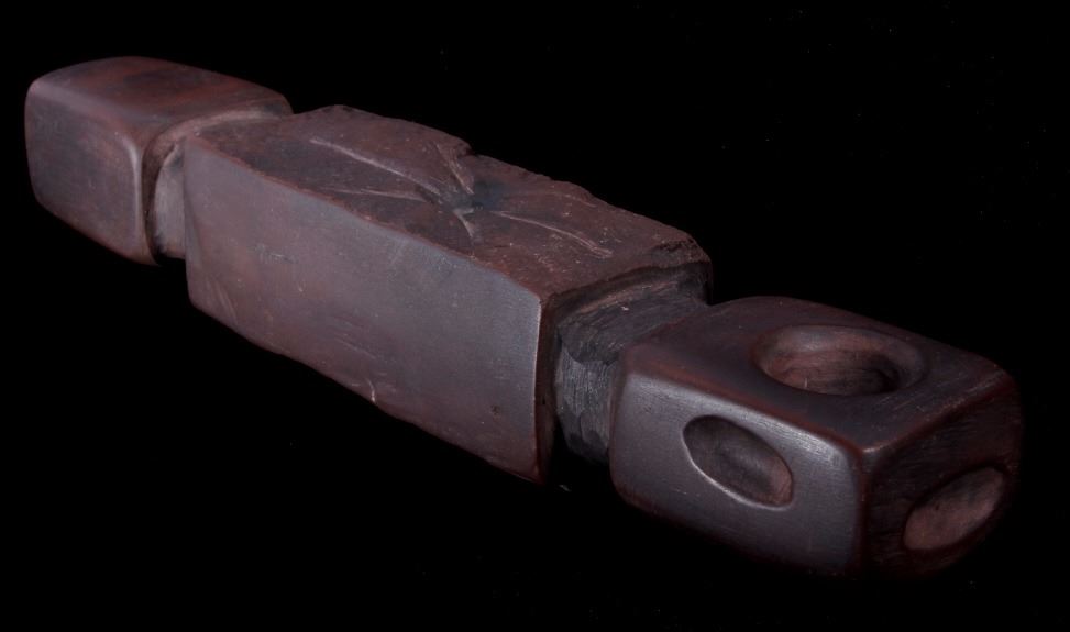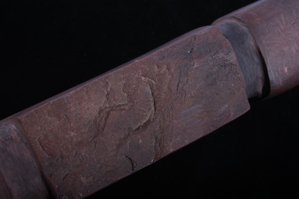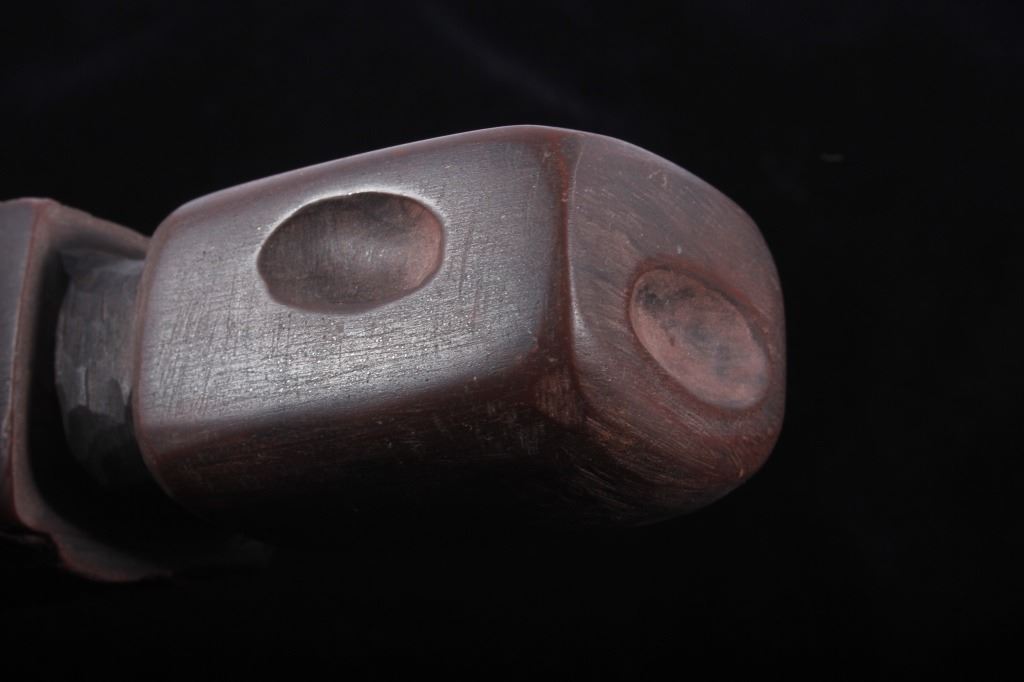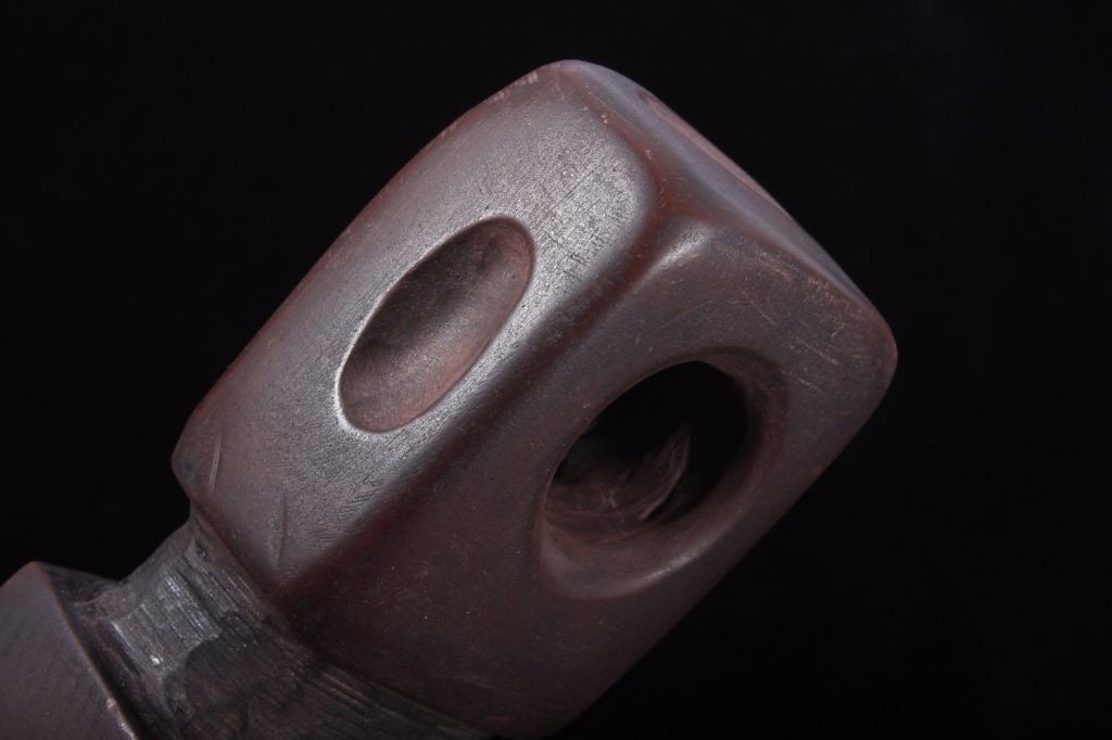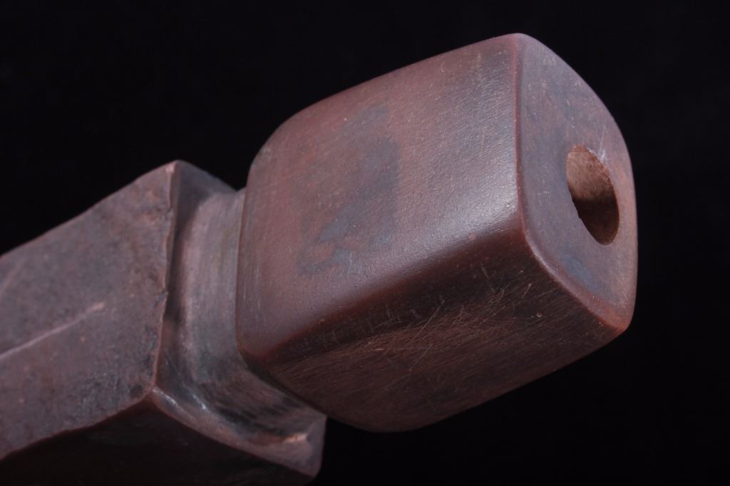 This is an authentic Sioux Native American Indian catlinite pipestone engraved star pattern pipe. The Engraved Historic Era Pipe shows a star pattern engraving and was found by Neal Lundquist on his farm in Kingsbury, South Dakota. The piece comes with a Certificate of Authenticity from Bennett's Artifact Authentication. The piece shows wonderful condition and is truly an excellent museum quality piece. Measures 7 15/16"L x 1 5/8"W x 1.5"H and comes in a 8.25"x12.25" glass top shadow box that is 2 1/8" thick.