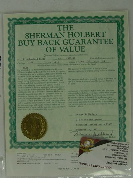 9. Purchases may be paid for by cash, check, or credit card. Personal checks will be accepted only if credit has been established with Allard Auctions, Inc. or if a bank authorization has been received guaranteeing a personal check. Allard Auctions, Inc. reserves the right to hold merchandise purchased by personal check until the check has cleared. Purchases paid for by Visa, MasterCard, American Express, or Discover must be cleared by telephone, and may take additional time at checkout.