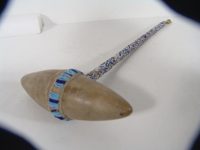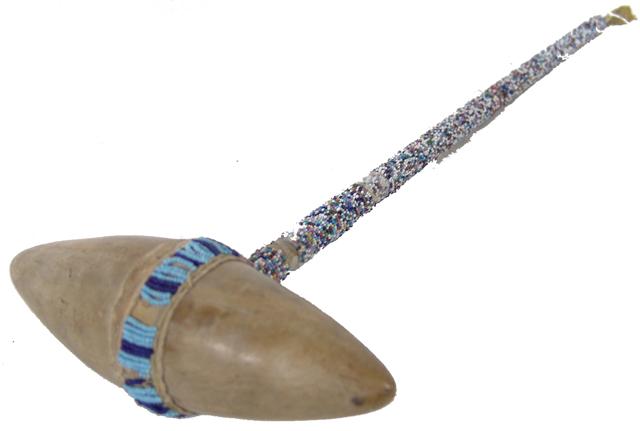 19th Century, Oval dolomite stone head mounted on a bead wrapped wooden handle, terminated with a 20" horse scalp. 23-1/2" x 8"