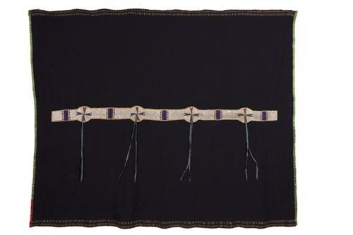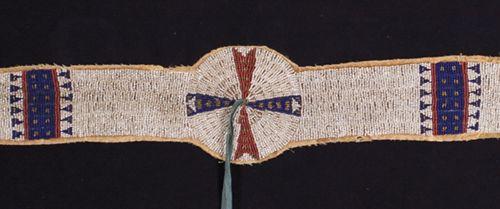 Beaded Blanket Strips: The origin of beaded blanket strips, which run horizontally across a wearing blanket, is presumed to have been a decoration to cover the seam where two hides were sewn together. Later, when trade cloth was more commonly used, the beaded strips became more decorative in nature.