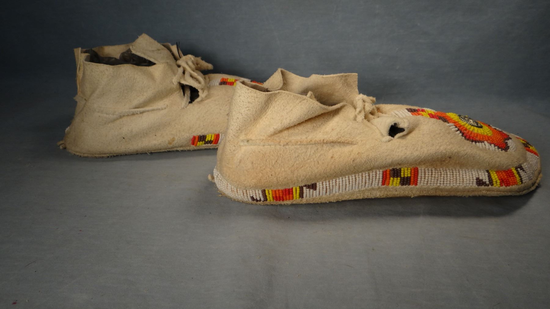 Sioux split hide moccasins, partially beaded, Pine Ridge Reservation, S. Dak
