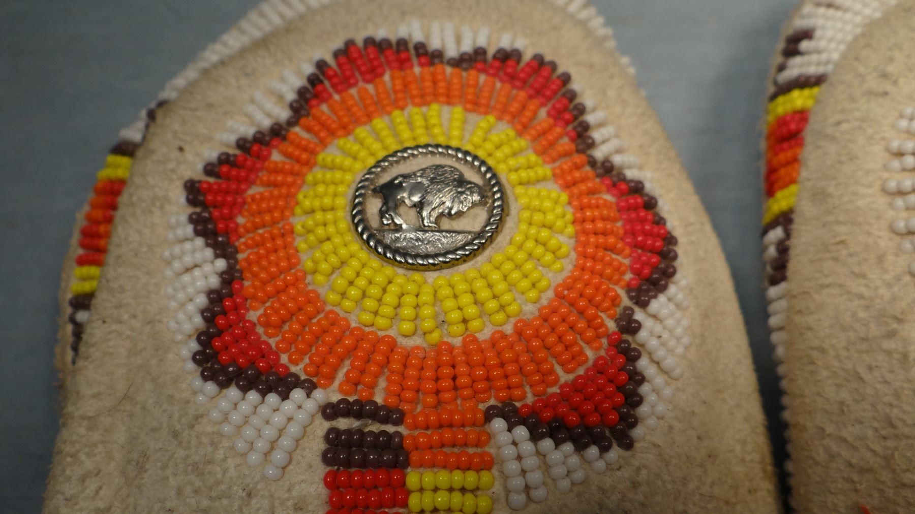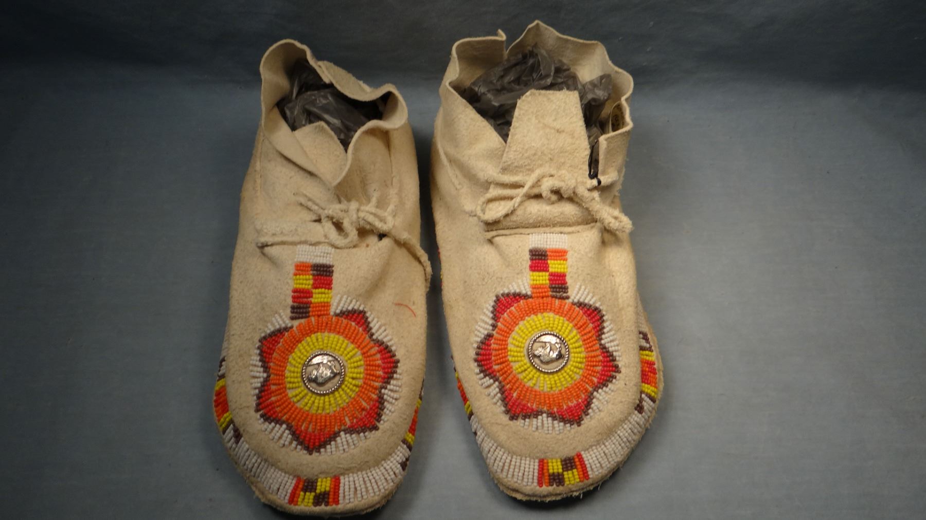 Sioux split hide moccasins, partially beaded, Pine Ridge Reservation, S. Dak.