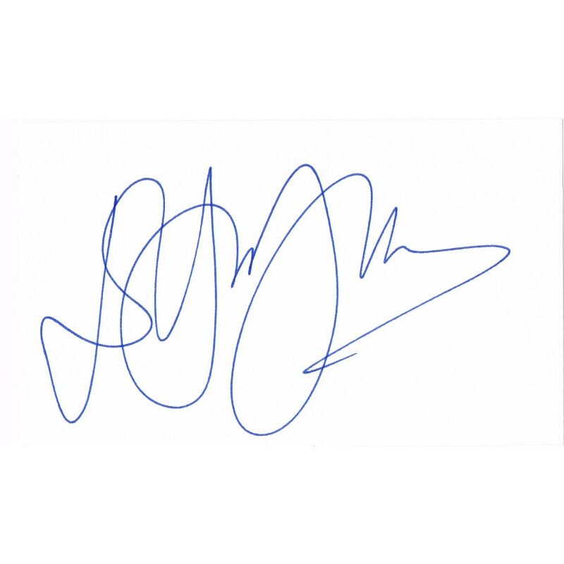 This autographed card by Elton John measures 3" x 5". Written in blue ink, the signature and card are in fine condition.