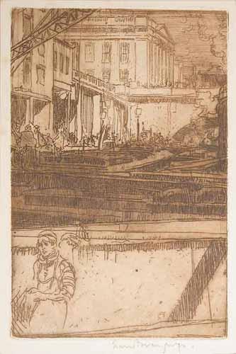 Sir Frank Brangwyn (1867-1956) unframed etching, Portion of London Bridge No.1 - Fishmongers Hall...