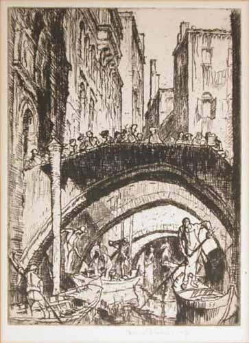 Sir Frank Brangwyn (1867-1956) unframed etching, 'Venetian Bridge', signed in pencil, 8 x 6 ins. £80-120