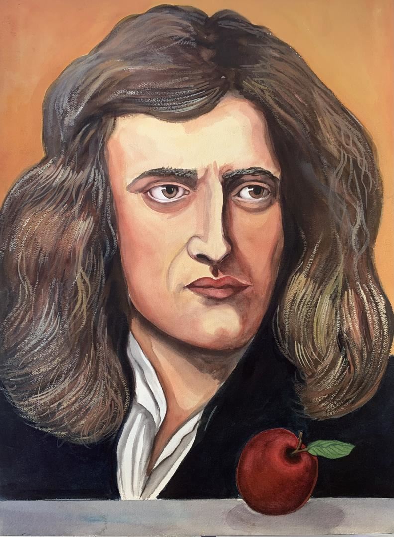 A pastel & watercolor portrait of the reknowned scientist, theorist & inventor best known for his theory of gravity. 24x18" on deckled fine art paper, by Anonymous