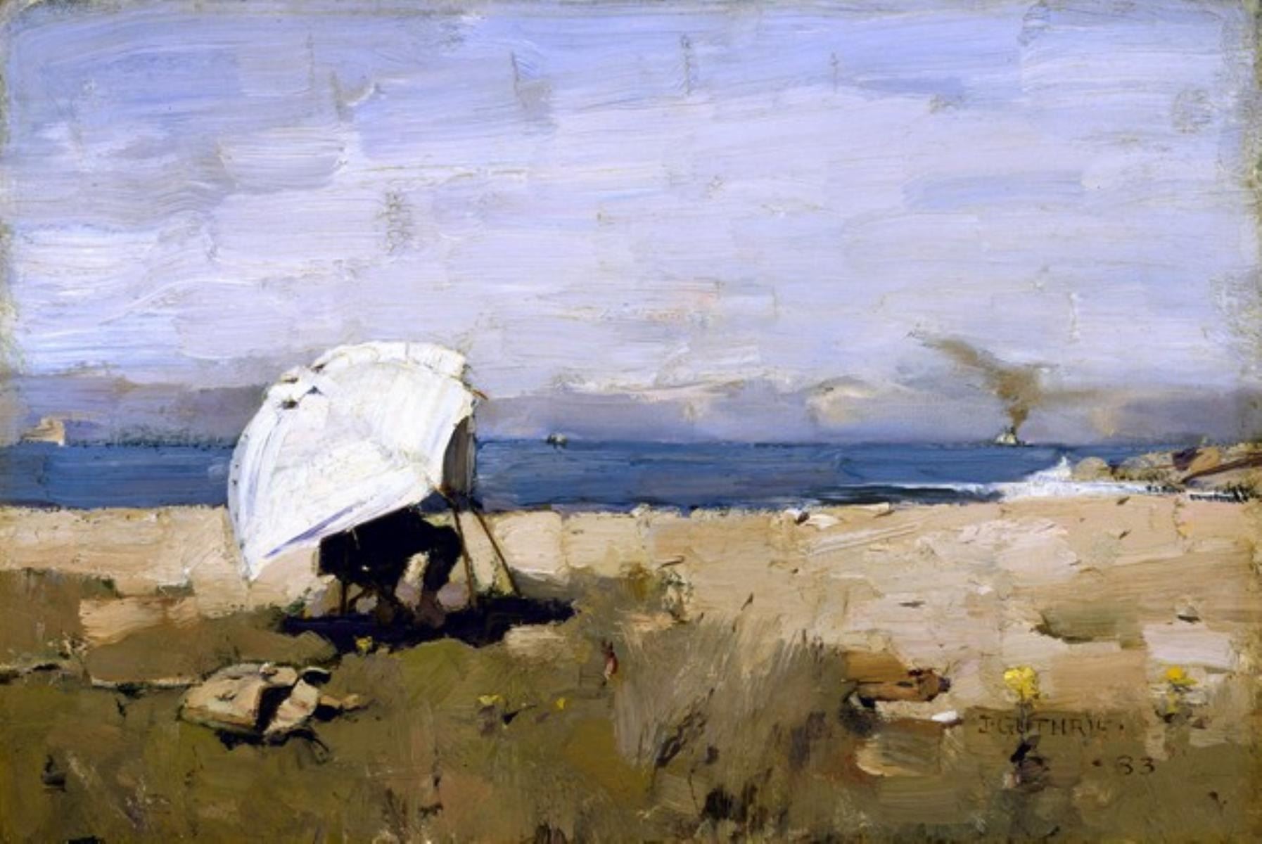 Artist: Sir James Guthrie - Title: Hard at It - Medium: Fine Art Reproduction Giclee on Canvas - Image Size: Approximately 13.25 inches x 20 inches - Unframed on Unstretched Canvas - Biography: Guthrie became one of the leading painters in the group of artists called the Glasgow Boys. His early works of rural subjects painted with broad square brush strokes show the strong influence of French painters such as Bastien-Lepage. Guthrie was born in Greenock and trained as a lawyer before turning to art. After brief but stimulating periods in London and Paris, he committed himself to painting directly from nature in Scotland. Guthrie also experimented with pastel drawings and established a reputation as a successful portrait painter.