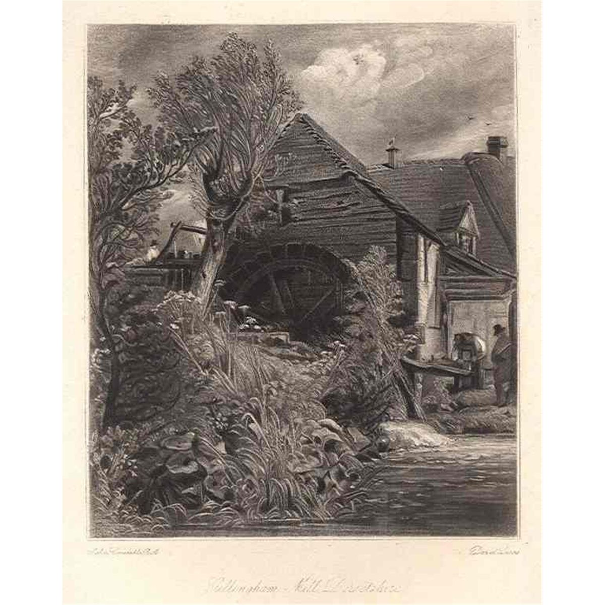Sir John Constable / David Lucas Mezzotint "Gillingham Mill" - This Beautiful Mezzotint Engraving Was Composed By John Constable And Engraved By David Lucas. It Is From The Much Sought-After "English Landscape" Series; This Impression On Wove Paper Is From The Bohn Edition Of 1855. Image Size (Not Including The Platemark) Is Approximately 7 1/2 X 5 1/2 Inches, With Full Original Margins. - Professionally Framed & Matted - Comes With Certificate - -