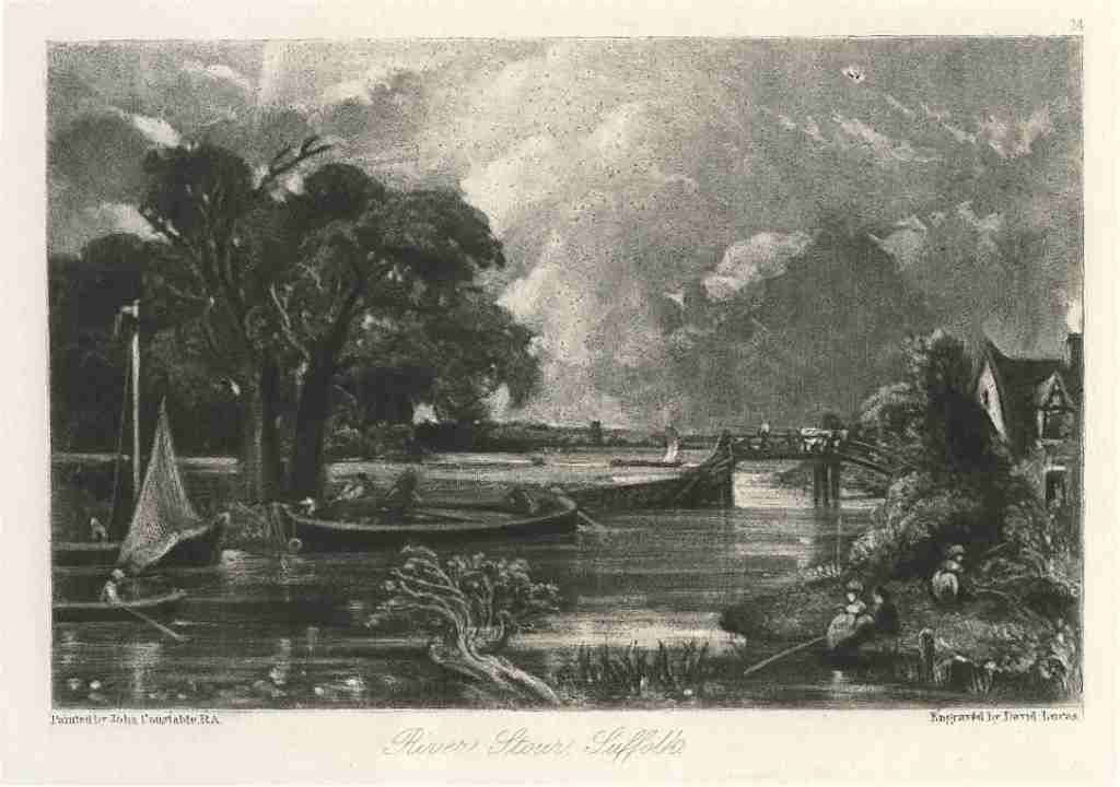 Sir John Constable / David Lucas Mezzotint "River Stour, Suffolk - This Beautiful Mezzotint Engraving Was Composed By John Constable And Engraved By David Lucas. It Is From The Much Sought-After "English Landscape" Series; This Impression On Cream Wove Paper Is From The Bohn Edition Of 1855. Image Size (Not Including The Platemark) Is Approximately 5 3/4 X 8 3/4 Inches, With Full Original Margins. - Professionally Framed & Matted - Comes With Certificate - -