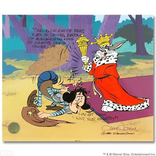 Own this amazing piece based on the original line image hand drawn and hand-inked on paper by Mr. Jones! "Sir Loin of Beef" is a sold out limited edition animation cel with hand painted coloring on sericel outline, numbered and hand signed by Chuck Jones (1912-2002). Includes Certificate of Authenticity! Measures approx. 12.5" x 10.5".