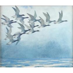 Sir Peter Markham Scott (1909-1990) Wild Geese in Flight signed lower left "Peter Scott" watercolou.