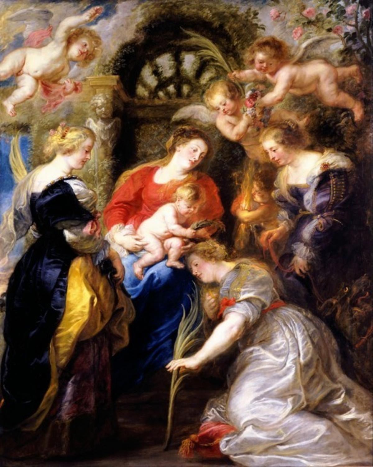 Artist: Sir Peter Paul Rubens - Title: Crowning of Saint Catherine - Medium: Fine Art Reproduction Giclee on Canvas - Image Size: Approximately 20 inches x 16 inches - Unframed on Unstretched Canvas - Biography: Sir Peter Paul Rubens (28 June 1577 - 30 May 1640) was a Flemish artist and diplomat from the Duchy of Brabant in the Southern Netherlands (modern-day Belgium) who lived during the Dutch Golden Age. He is considered the most influential artist of the Flemish Baroque tradition. Sir Peter Paul Rubens's highly charged compositions reference erudite aspects of classical and Christian history. His unique and immensely popular Baroque style emphasized movement, colour, and sensuality, which followed the immediate, dramatic artistic style promoted in the Counter-Reformation. Sir Peter Paul Rubens was a painter producing altarpieces, portraits, landscapes, and history paintings of mythological and allegorical subjects. He was also a prolific designer of cartoons for the Flemish tapestry workshops and of frontispieces for the publishers in Antwerp.