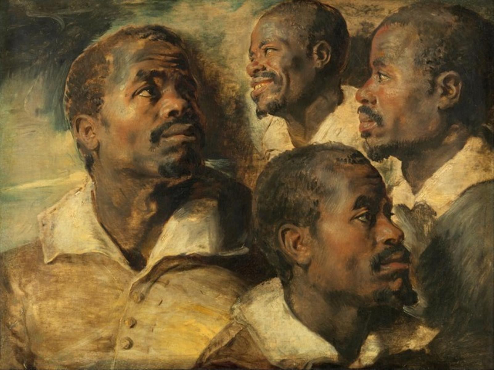 Artist: Sir Peter Paul Rubens - Title: Four Studies of a Head of a Moor - Medium: Fine Art Reproduction Giclee on Canvas - Image Size: Approximately 24 inches x 32 inches - Unframed on Unstretched Canvas - Biography: Sir Peter Paul Rubens (28 June 1577 - 30 May 1640) was a Flemish artist and diplomat from the Duchy of Brabant in the Southern Netherlands (modern-day Belgium) who lived during the Dutch Golden Age. He is considered the most influential artist of the Flemish Baroque tradition. Sir Peter Paul Rubens's highly charged compositions reference erudite aspects of classical and Christian history. His unique and immensely popular Baroque style emphasized movement, colour, and sensuality, which followed the immediate, dramatic artistic style promoted in the Counter-Reformation. Sir Peter Paul Rubens was a painter producing altarpieces, portraits, landscapes, and history paintings of mythological and allegorical subjects. He was also a prolific designer of cartoons for the Flemish tapestry workshops and of frontispieces for the publishers in Antwerp.