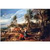 Artist: Sir Peter Paul Rubens - Title: Milkmaids with Cattle in a Landscape - Medium: Fine Art Reproduction Giclee on Canvas - Image Size: Approximately 21.25 inches x 32 inches - Unframed on Unstretched Canvas - Biography: Sir Peter Paul Rubens (28 June 1577 - 30 May 1640) was a Flemish artist and diplomat from the Duchy of Brabant in the Southern Netherlands (modern-day Belgium) who lived during the Dutch Golden Age. He is considered the most influential artist of the Flemish Baroque tradition. Sir Peter Paul Rubens's highly charged compositions reference erudite aspects of classical and Christian history. His unique and immensely popular Baroque style emphasized movement, colour, and sensuality, which followed the immediate, dramatic artistic style promoted in the Counter-Reformation. Sir Peter Paul Rubens was a painter producing altarpieces, portraits, landscapes, and history paintings of mythological and allegorical subjects. He was also a prolific designer of cartoons for the Flemish tapestry workshops and of frontispieces for the publishers in Antwerp.