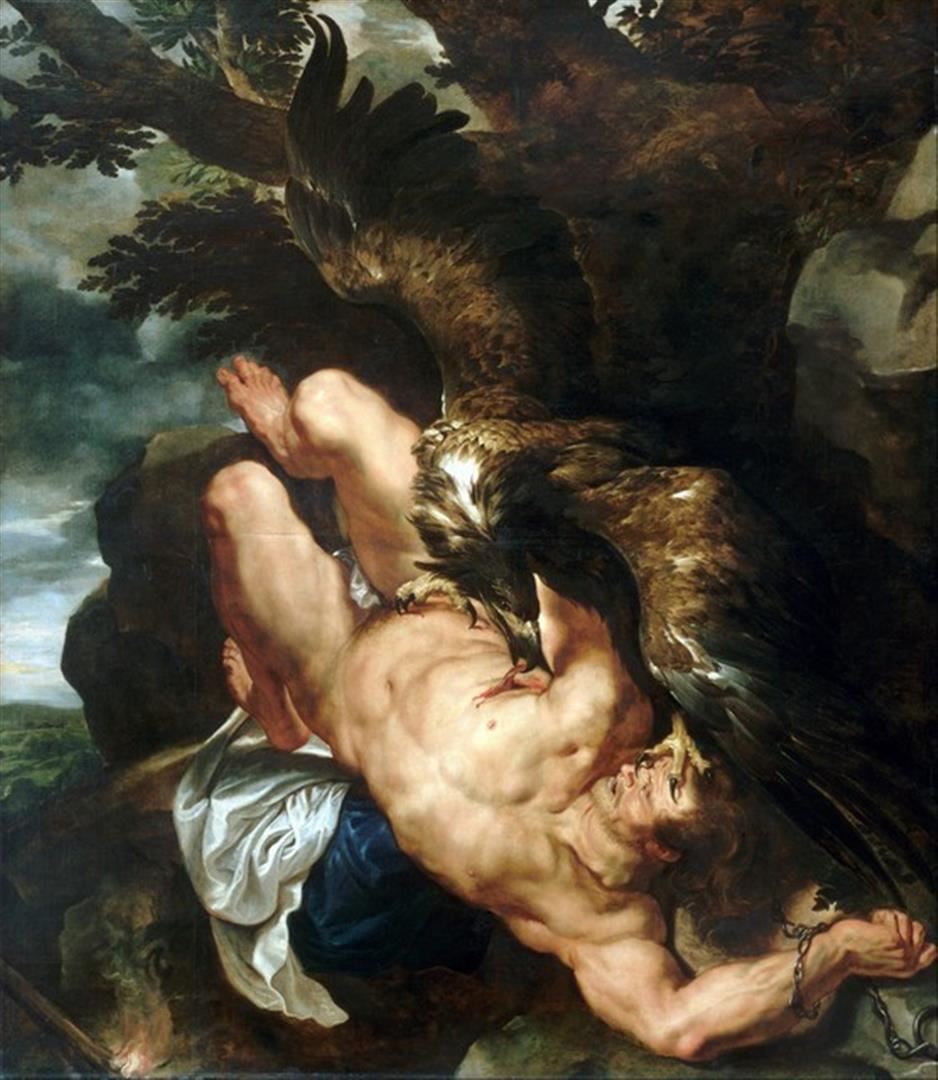 Artist: Sir Peter Paul Rubens - Title: Prometheus Bound - Medium: Fine Art Reproduction Giclee on Canvas - Image Size: Approximately 32 inches x 27.75 inches - Unframed on Unstretched Canvas - Biography: Sir Peter Paul Rubens (28 June 1577 - 30 May 1640) was a Flemish artist and diplomat from the Duchy of Brabant in the Southern Netherlands (modern-day Belgium) who lived during the Dutch Golden Age. He is considered the most influential artist of the Flemish Baroque tradition. Sir Peter Paul Rubens's highly charged compositions reference erudite aspects of classical and Christian history. His unique and immensely popular Baroque style emphasized movement, colour, and sensuality, which followed the immediate, dramatic artistic style promoted in the Counter-Reformation. Sir Peter Paul Rubens was a painter producing altarpieces, portraits, landscapes, and history paintings of mythological and allegorical subjects. He was also a prolific designer of cartoons for the Flemish tapestry workshops and of frontispieces for the publishers in Antwerp.