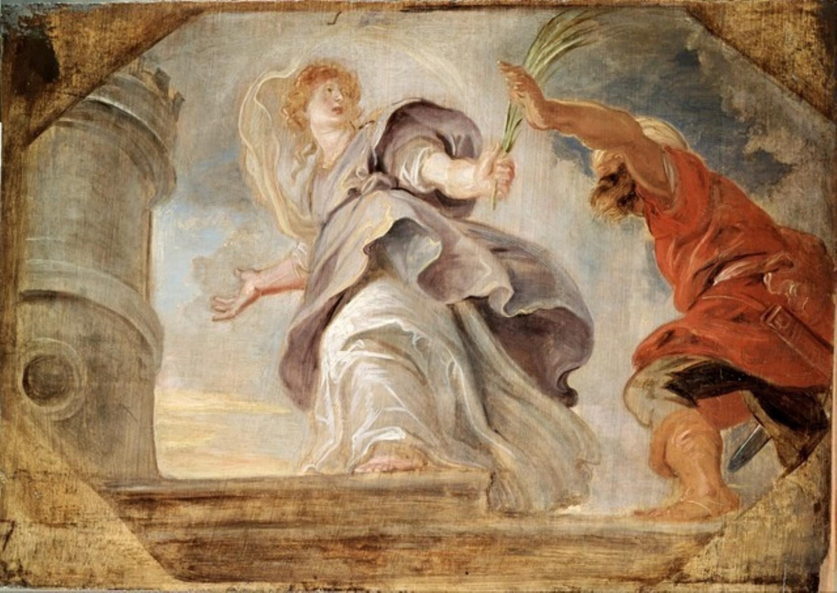Artist: Sir Peter Paul Rubens - Title: Saint Barbara Fleeing from her Father - Medium: Fine Art Reproduction Giclee on Canvas - Image Size: Approximately 14 inches x 20 inches - Unframed on Unstretched Canvas - Biography: Sir Peter Paul Rubens (28 June 1577 - 30 May 1640) was a Flemish artist and diplomat from the Duchy of Brabant in the Southern Netherlands (modern-day Belgium) who lived during the Dutch Golden Age. He is considered the most influential artist of the Flemish Baroque tradition. Sir Peter Paul Rubens's highly charged compositions reference erudite aspects of classical and Christian history. His unique and immensely popular Baroque style emphasized movement, colour, and sensuality, which followed the immediate, dramatic artistic style promoted in the Counter-Reformation. Sir Peter Paul Rubens was a painter producing altarpieces, portraits, landscapes, and history paintings of mythological and allegorical subjects. He was also a prolific designer of cartoons for the Flemish tapestry workshops and of frontispieces for the publishers in Antwerp.