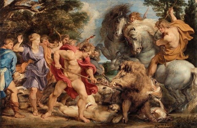 Artist: Sir Peter Paul Rubens - Title: The Calydonian Boar Hunt - Medium: Fine Art Reproduction Giclee on Canvas - Image Size: Approximately 20.75 inches x 32 inches - Unframed on Unstretched Canvas - Biography: Sir Peter Paul Rubens (28 June 1577 - 30 May 1640) was a Flemish artist and diplomat from the Duchy of Brabant in the Southern Netherlands (modern-day Belgium) who lived during the Dutch Golden Age. He is considered the most influential artist of the Flemish Baroque tradition. Sir Peter Paul Rubens's highly charged compositions reference erudite aspects of classical and Christian history. His unique and immensely popular Baroque style emphasized movement, colour, and sensuality, which followed the immediate, dramatic artistic style promoted in the Counter-Reformation. Sir Peter Paul Rubens was a painter producing altarpieces, portraits, landscapes, and history paintings of mythological and allegorical subjects. He was also a prolific designer of cartoons for the Flemish tapestry workshops and of frontispieces for the publishers in Antwerp.