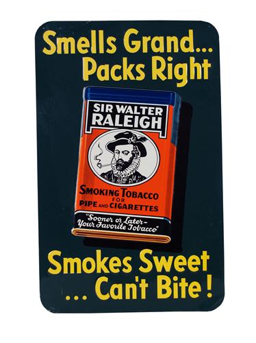 Sir Walter Raleigh tin embossed sign 16 x 26 " exlnt cond