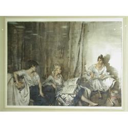 Sir William Russell Flint SPANISH LADIES READING Limited edition reproduction, printed in colour, signed in pencil, 45 x 60cm