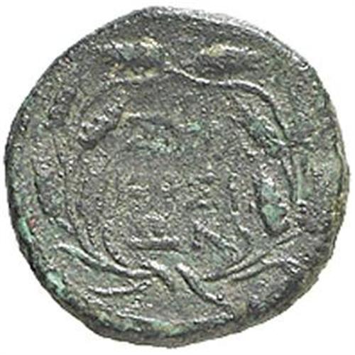 Mondo Greco. Sicilia. Siracusa. AE 16 mm. 212 a.C. D/ Testa di Persefone a sinistra. R/ ΣIPA / KOΣI / ΩN entro corona di spighe di grano. SNG ANS 1403. gr. 3.21 AE. Bel BB+/BB.