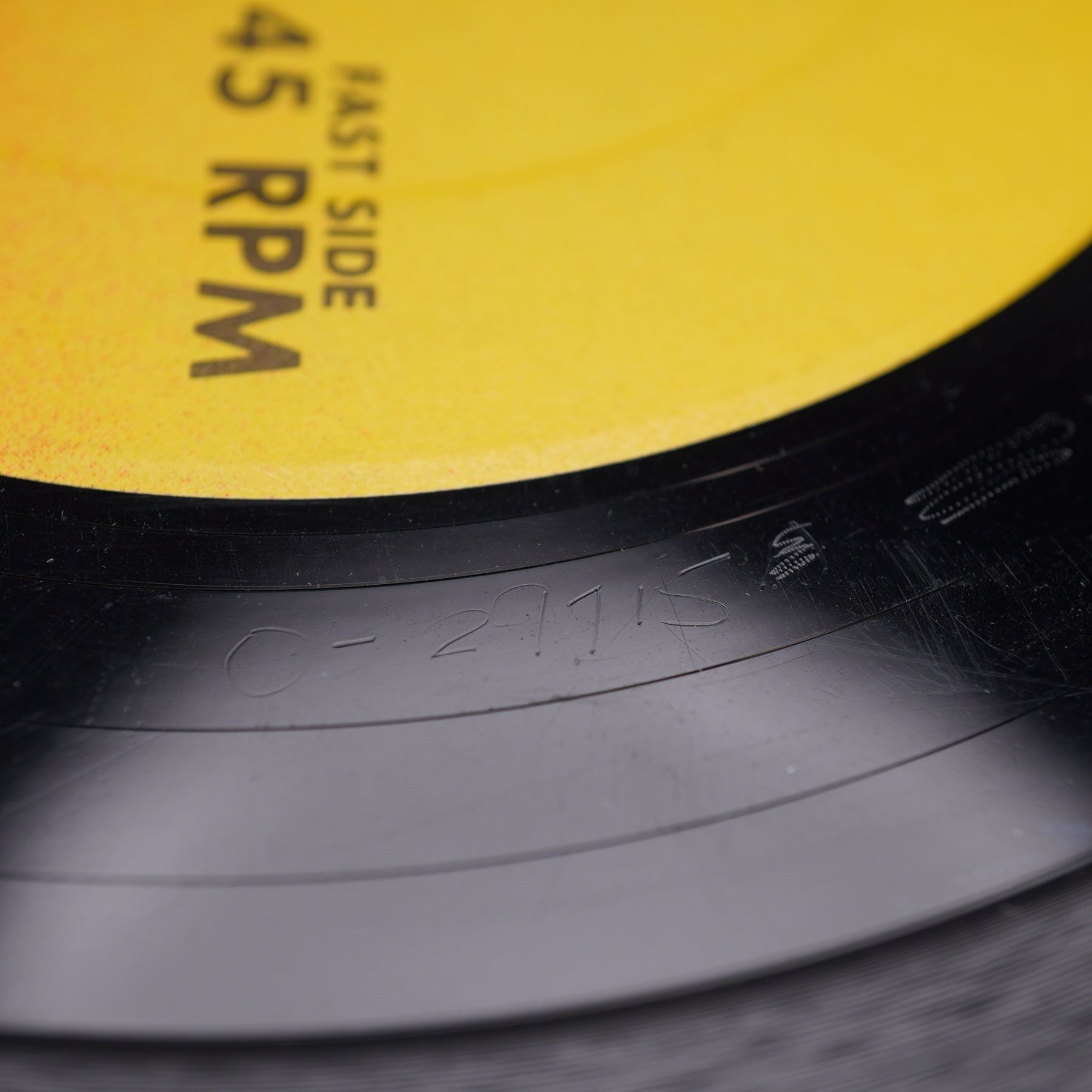 A 1983 specially priced maxi single 12-inch vinyl of Madonna's early club release featuring "Burning Up" and "Physical Attraction," issued by Sire Records. This early entry in Madonna's discography showcases the nascent sound that would define her pioneering presence in 1980s dance pop. Produced by Reggie Lucas and engineered by Jim Dougherty. The record plays at 45 RPM and features the East Side track "Burning Up" and the Slow Side track "Physical Attraction." The sleeve is adorned with vibrant, pop art style illustrations and collages, designed by artist Martin Burgoyne. The back cover includes a stylized portrait illustration of Madonna within a dotted frame bordered in blue, while the label itself bears the classic Sire yellow and purple logo.