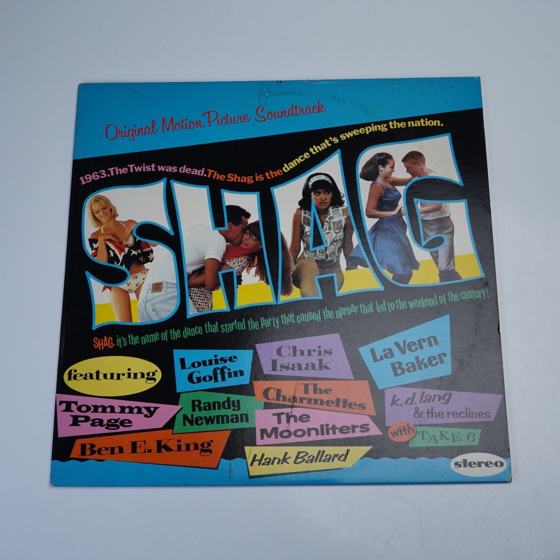 This vinyl record, released by Sire Records, presents the original motion picture soundtrack for the 1989 film Shag, a coming of age drama set in the summer of 1963. The vibrant front cover evokes the era's youthful exuberance with retro typography and collage style imagery of the film's characters mid dance, accompanied by colorful artist nameplates. This soundtrack compilation features a curated blend of 1960s hits and contemporary contributions, with tracks by Ben E. King, Hank Ballard, The Charmettes, Chris Isaak, Randy Newman, k.d. lang & the reclines, and others. Pressed in stereo, the vinyl bears the signature yellow Sire label.