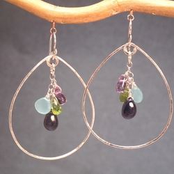 Metal: SilverHammered drops with your choice of stones (pale amethyst, peridot, sea blue chalcedony, and dark amethyst shown first pic, blue lace agate, iolite, amethyst, and purple jade shown second pic), about 2" long.choose stone colors from top to bottom (#1 top - #4 bottom).Available in either 14K gold-filled, rose gold-filled, or sterling silver. All jewelry is entirely handmade in our studio in New York.
