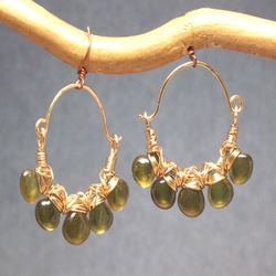 Metal: SilverHammered hoops wrapped with vessonite, about 1-3/4" long. Available in either 14K gold-filled, rose gold-filled, or sterling silver. All jewelry is entirely handmade in our studio in New York.